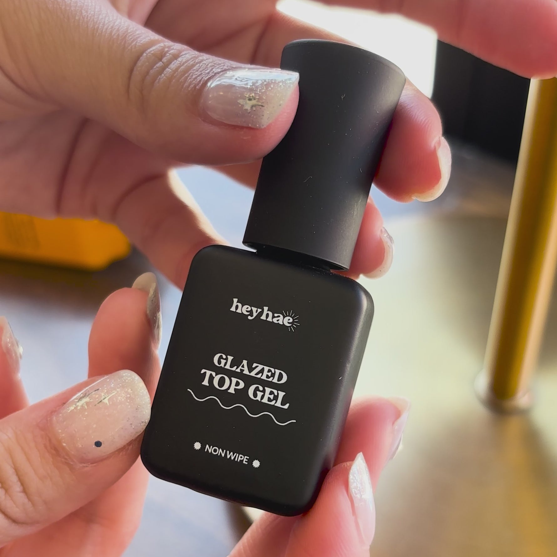 This is the cherry on top!! OmG just when you think it can not get any better.... you apply the glazed top coat and that is it!! Better than any nail salon and so much quicker, so much less expensive!!! This may just put them out of business!!! On top of your very promt delivery I could not ask for any better service! Thank you ao much heyhae.... till we meet again!